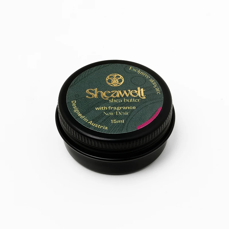 Die Sheawelt Noir Désir Shea Butter ist eine rein natürliche Pflege, die Ihre Haut mit wertvollen Vitaminen und Antioxidantien verwöhnt. Reine Shea Butter spendet intensive Nährung, bewahrt die Geschmeidigkeit und schützt vor Austrocknung. Der von Black Opium inspirierte Duft verleiht der Pflege einen eleganten, sinnlichen Charakter – ein kleines Stück Luxus für unterwegs und den Alltag.